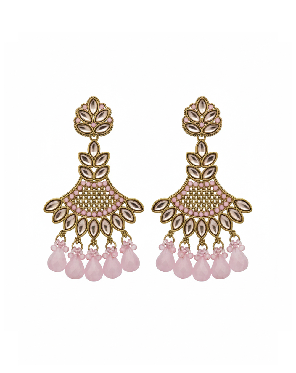 Elegant hanging earrings featuring a soft light-pink stone, crafted for a graceful and feminine look.