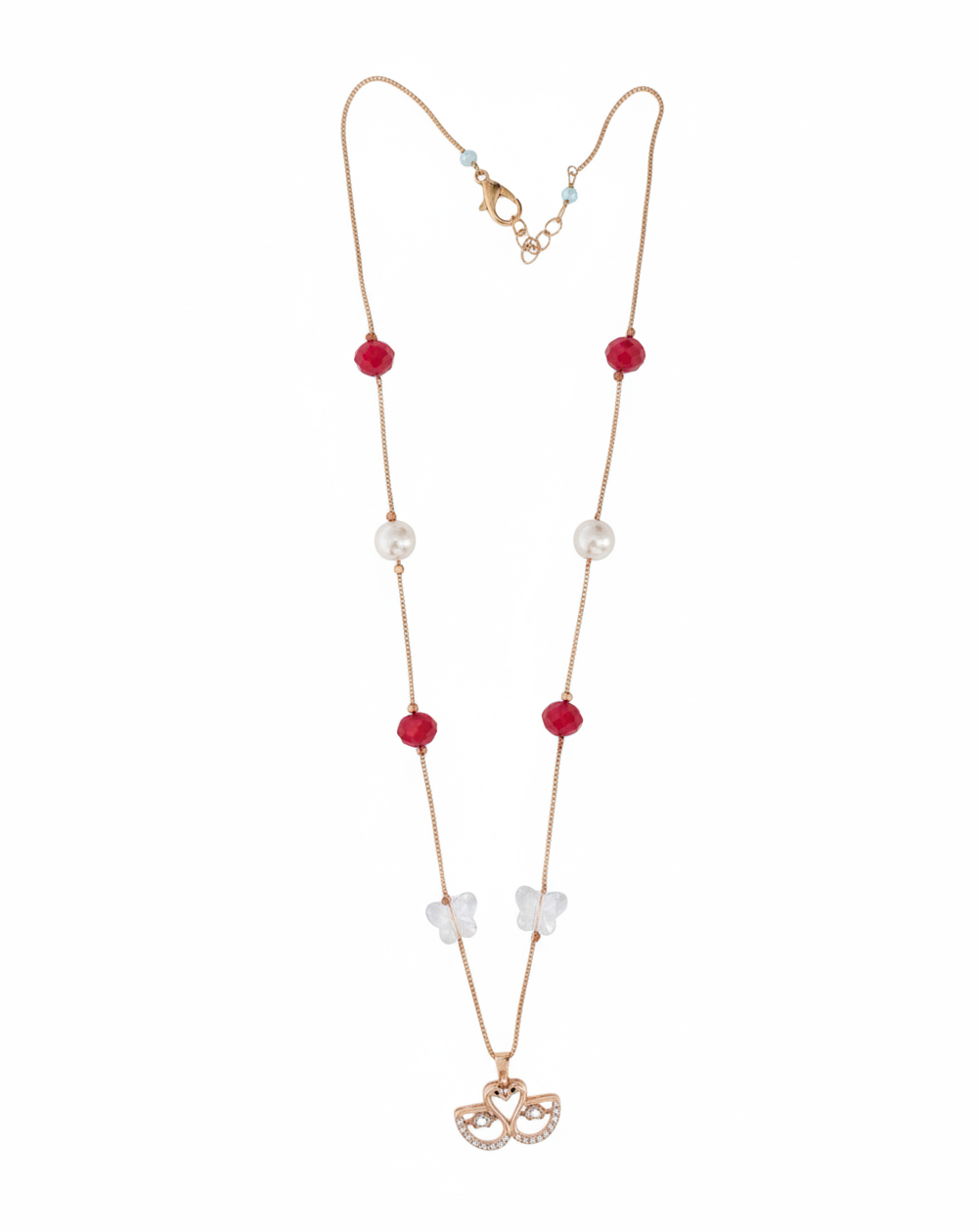 A beautiful pendant chain designed with red beads, pearls, and crystal flowers. Light, stylish, and perfect for everyday wear or special occasions.